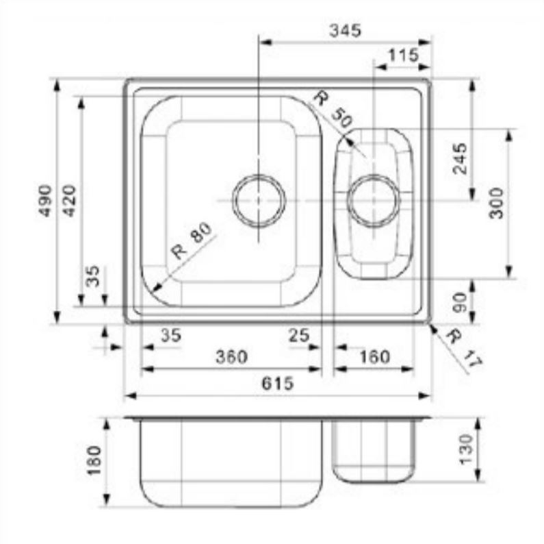 m/løft op & skål, Stålvask, 1½ kumme. For nedlægning - Rustfrit stål