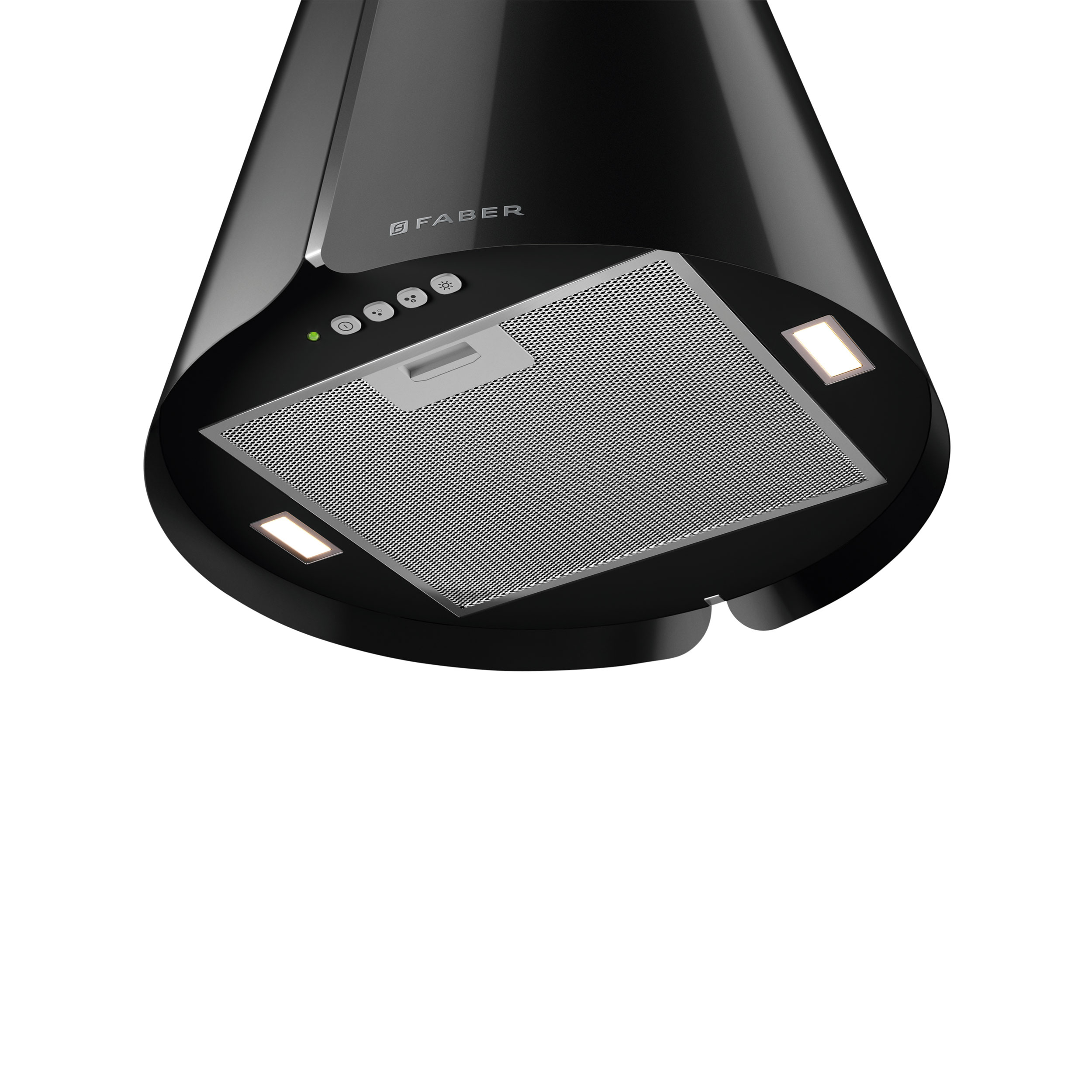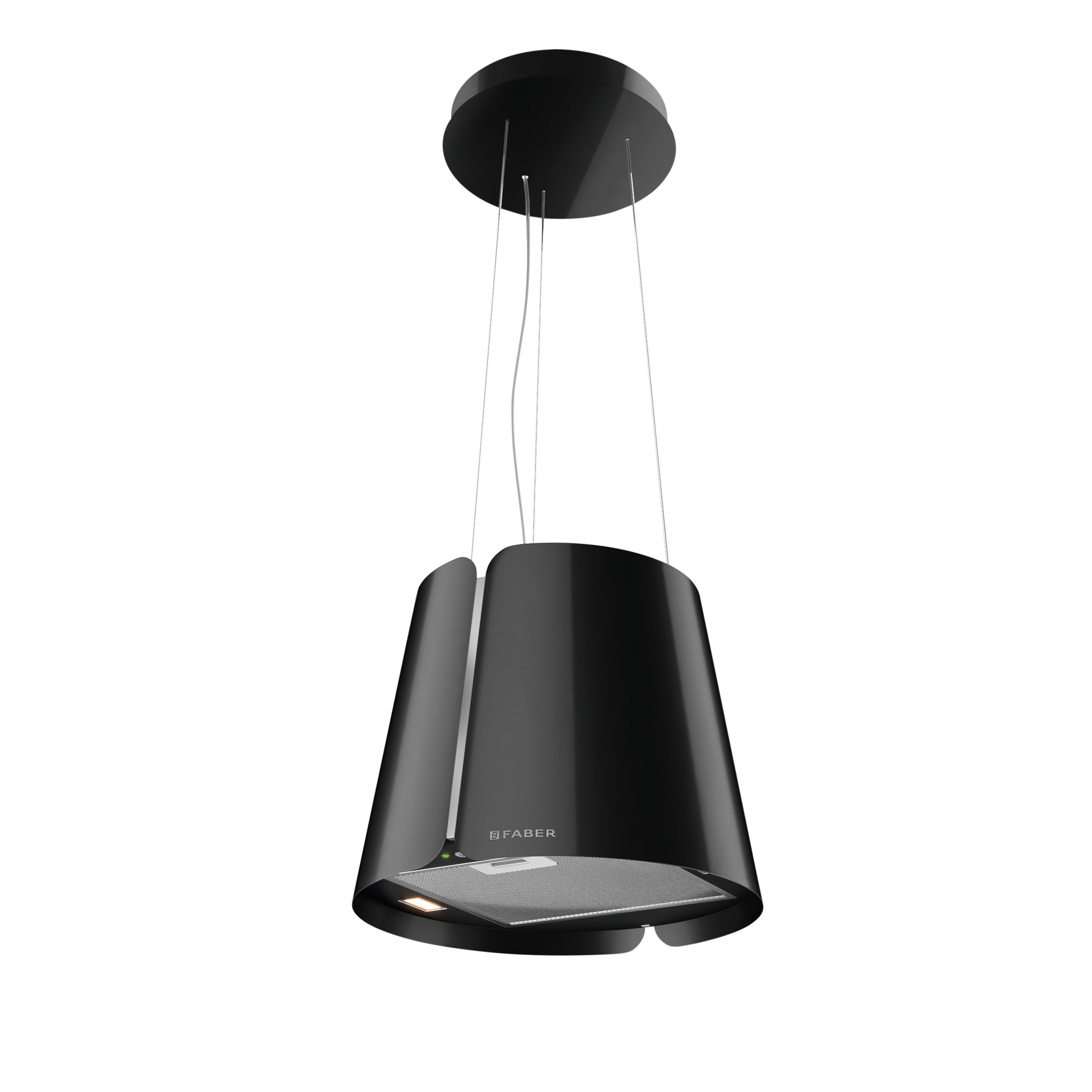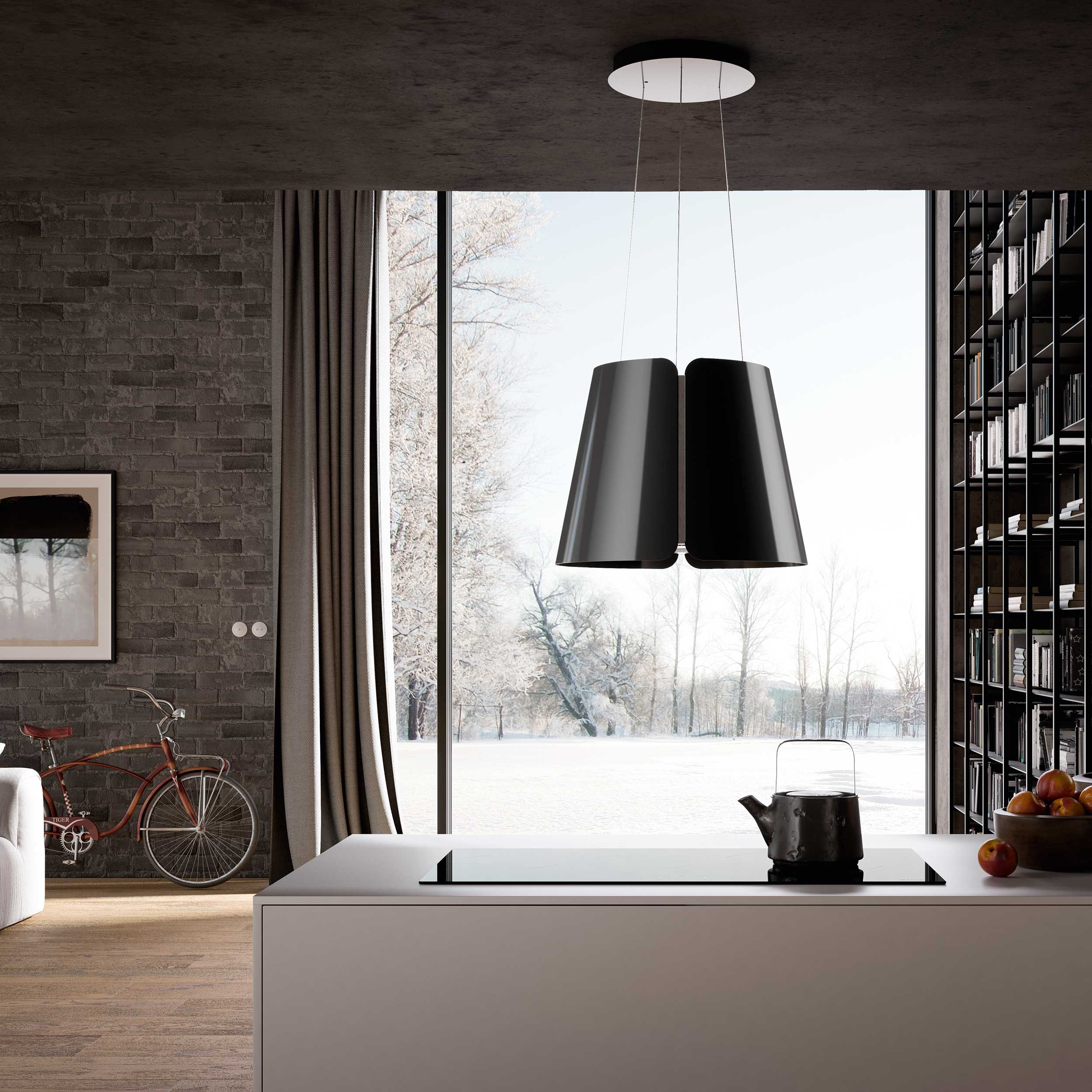 Frithængende wirehængt emfang. Med intern motor & recirkulationsfilter - Black gloss - Ø430 mm - A
