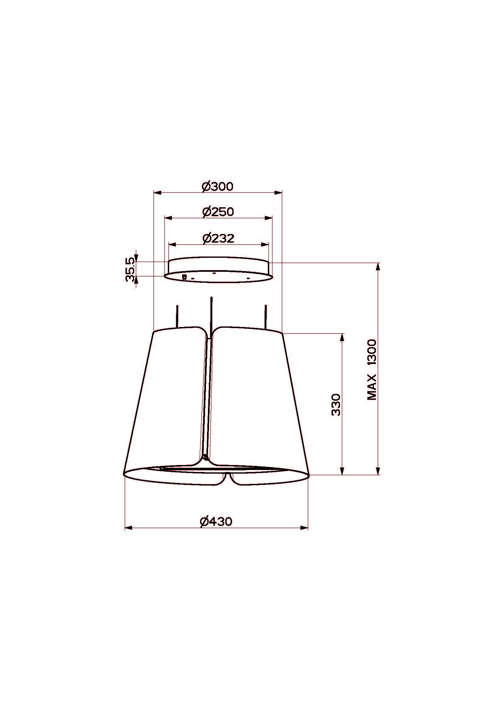 • Produkt (BxDxH) 430 x 430 x Ma x 1300 mm
