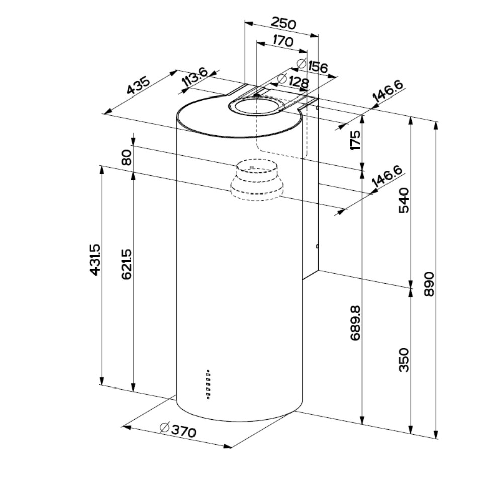 Vægmontert emhætte. Med indbygget flytbar motor - Rustfrit stål - Leveres med fjernbetjening - Ø370 mm - Model for recirkulation.