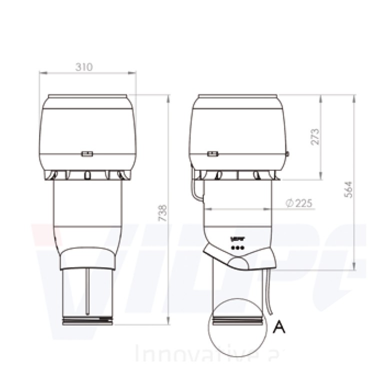 • Produkt (BxDxH) 310 x 310 x 738 (564) mm