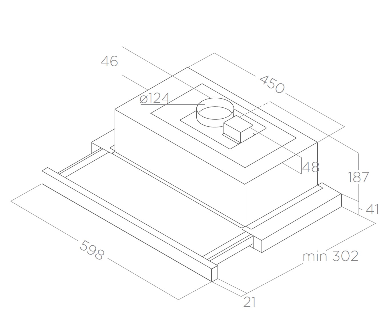 - Produkt (BxDxH) 598 x 302 - 455 x 205 mm