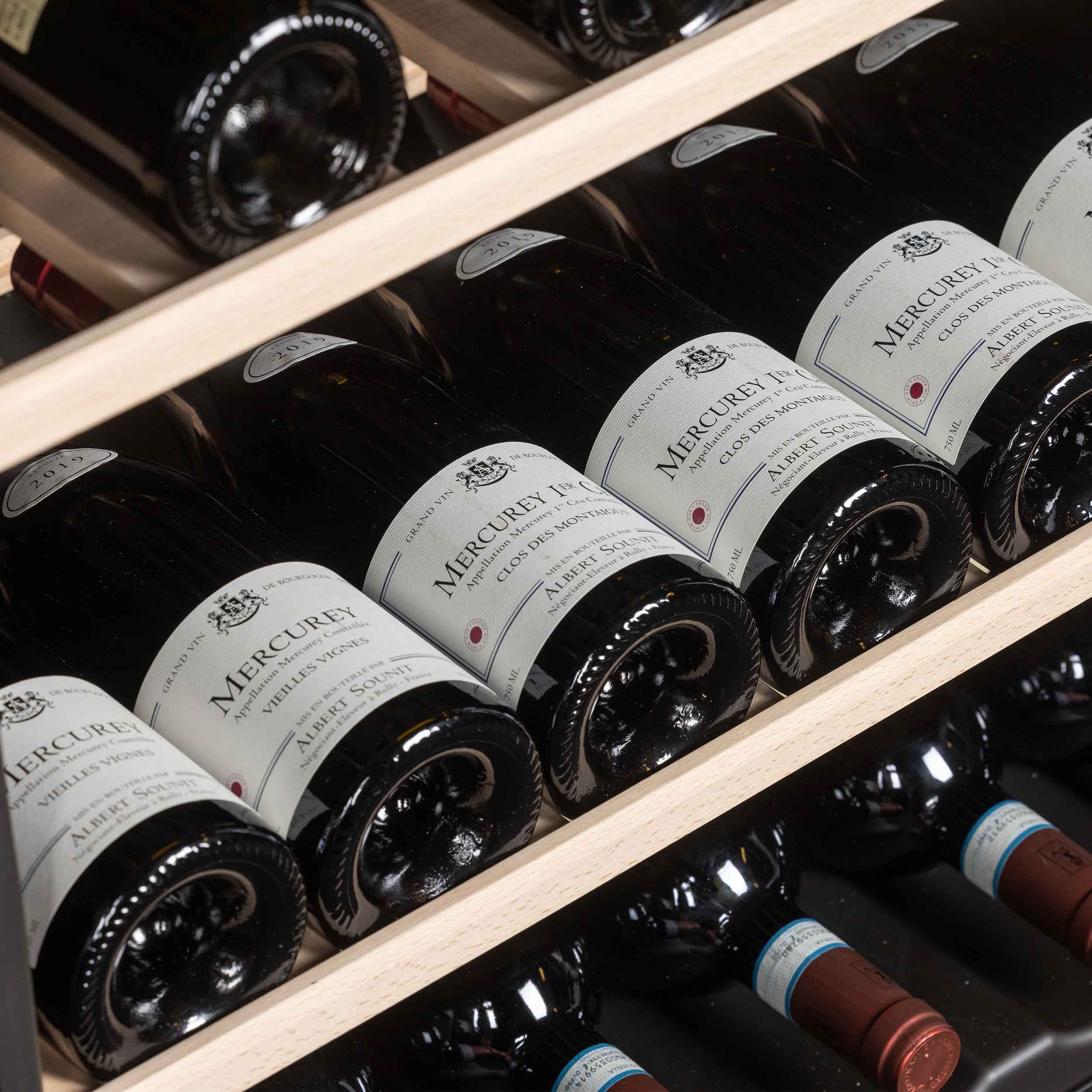 - Kølig og elegant vinkøleskab - produceret i Danmark. Dette skab, som kan monteres fritstående eller indbygges har plads til 197 flasker. Et multizone skab, med flere temperaturzoner - et af de mest fleksible vinkøleskabe. Skabet har en præsentationshylde og træhylder i ubehandlet bøg. For at absorbere eventuel reflektion og anden lyspåvirkning, er alle indvendige sider i vinkøleskabet sorte