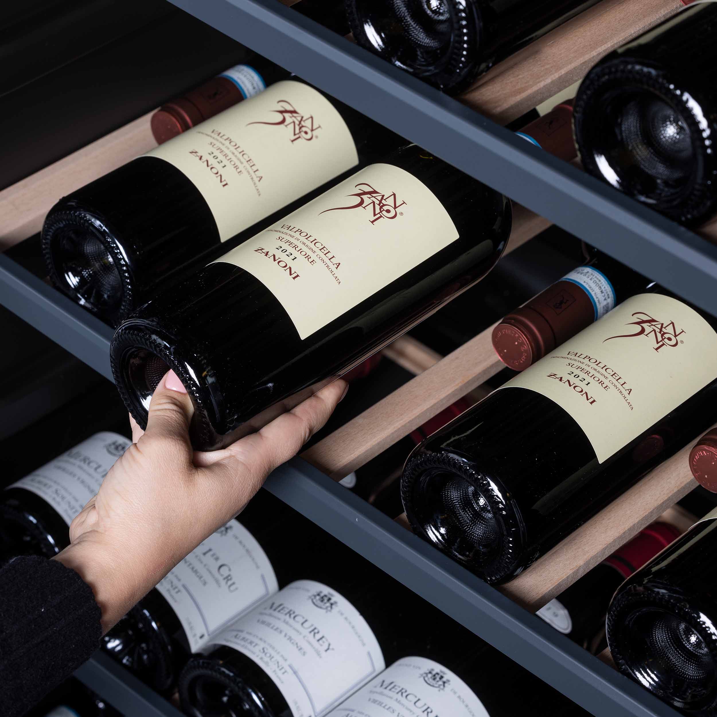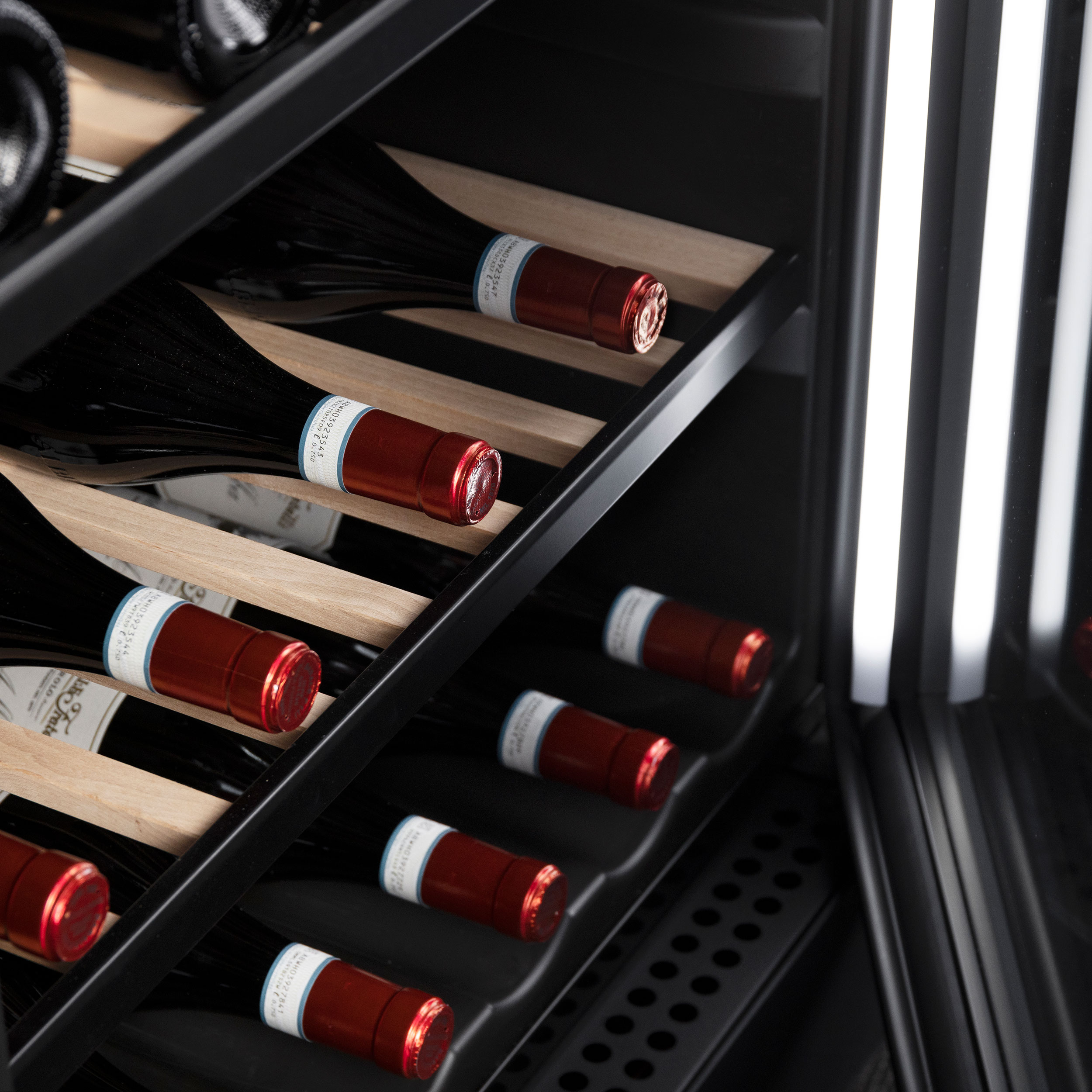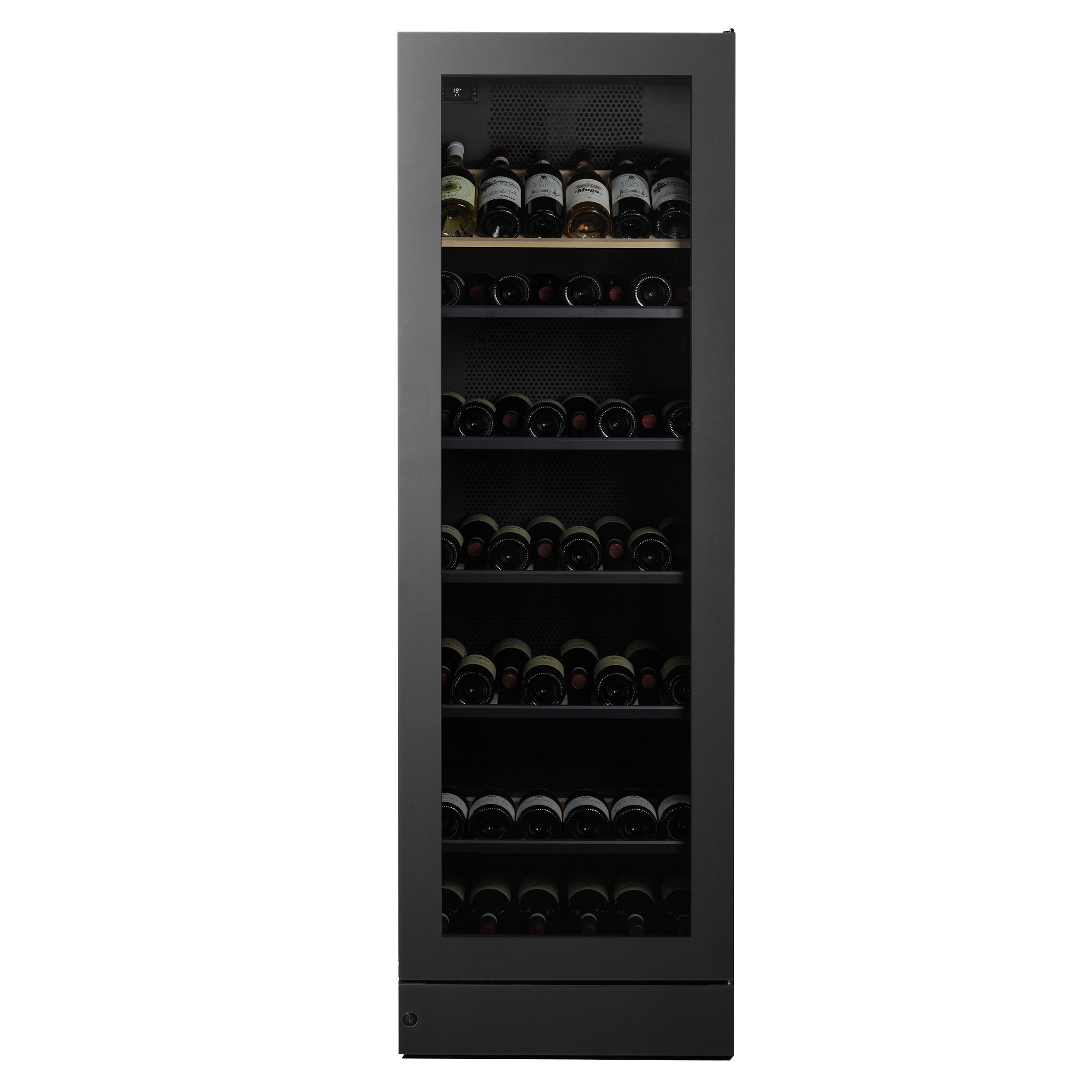 Multizone vinkøleskab 186 cm, 143 vinflasker - Sort front/Sorte sider - 595 x 610 x 1860 mm