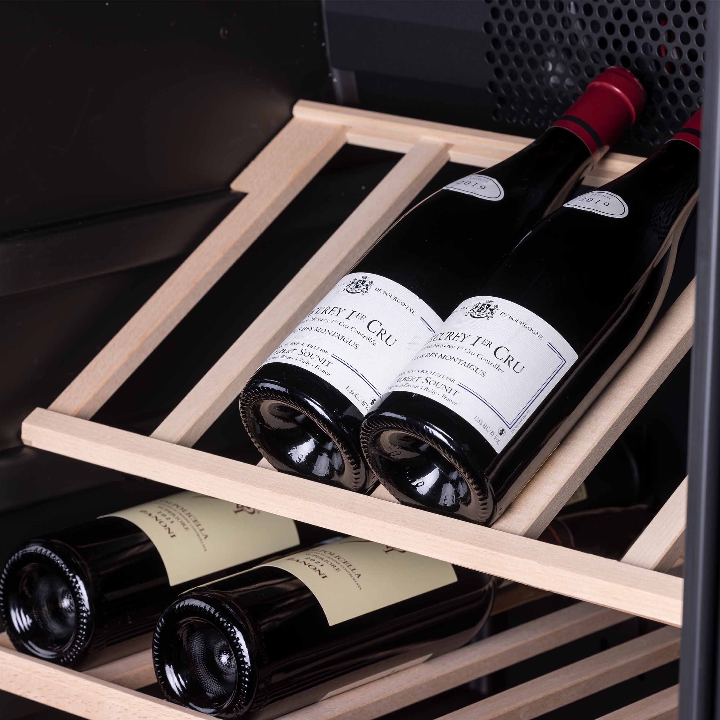 - På hylden kan du placere alle flasketyper, som Bordeaux, Bourgogne, Alsace og Champagne