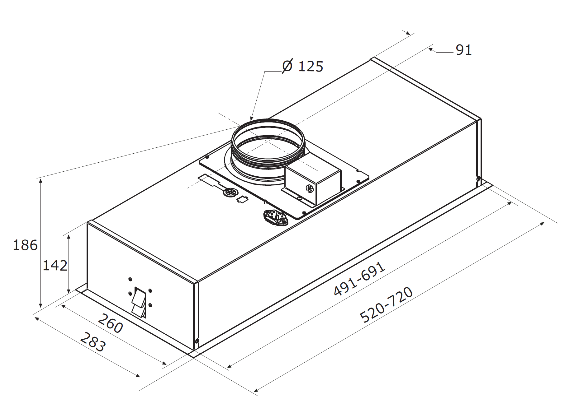- Produkt (BxDxH) 520 x 283 x 186 mm
