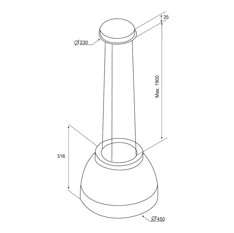 • Produkt (BxDxH) 450 x 450 x Max 1900 mm
