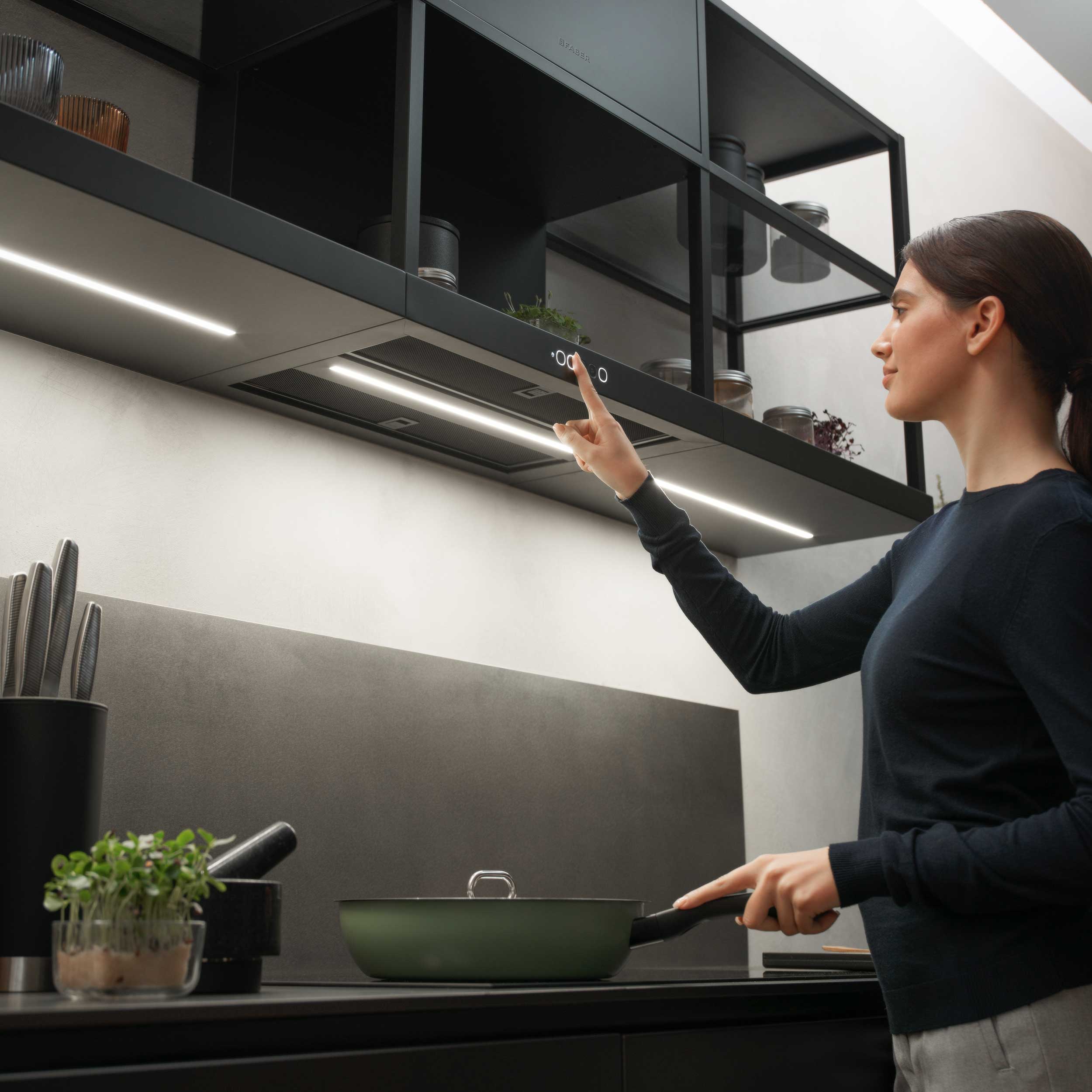Mulighed for bagudvendt aftræk Muligt at føre aftræk direkte bagud af emhætten