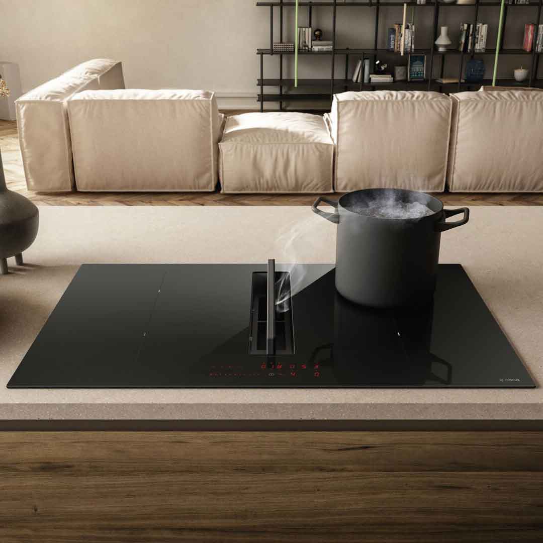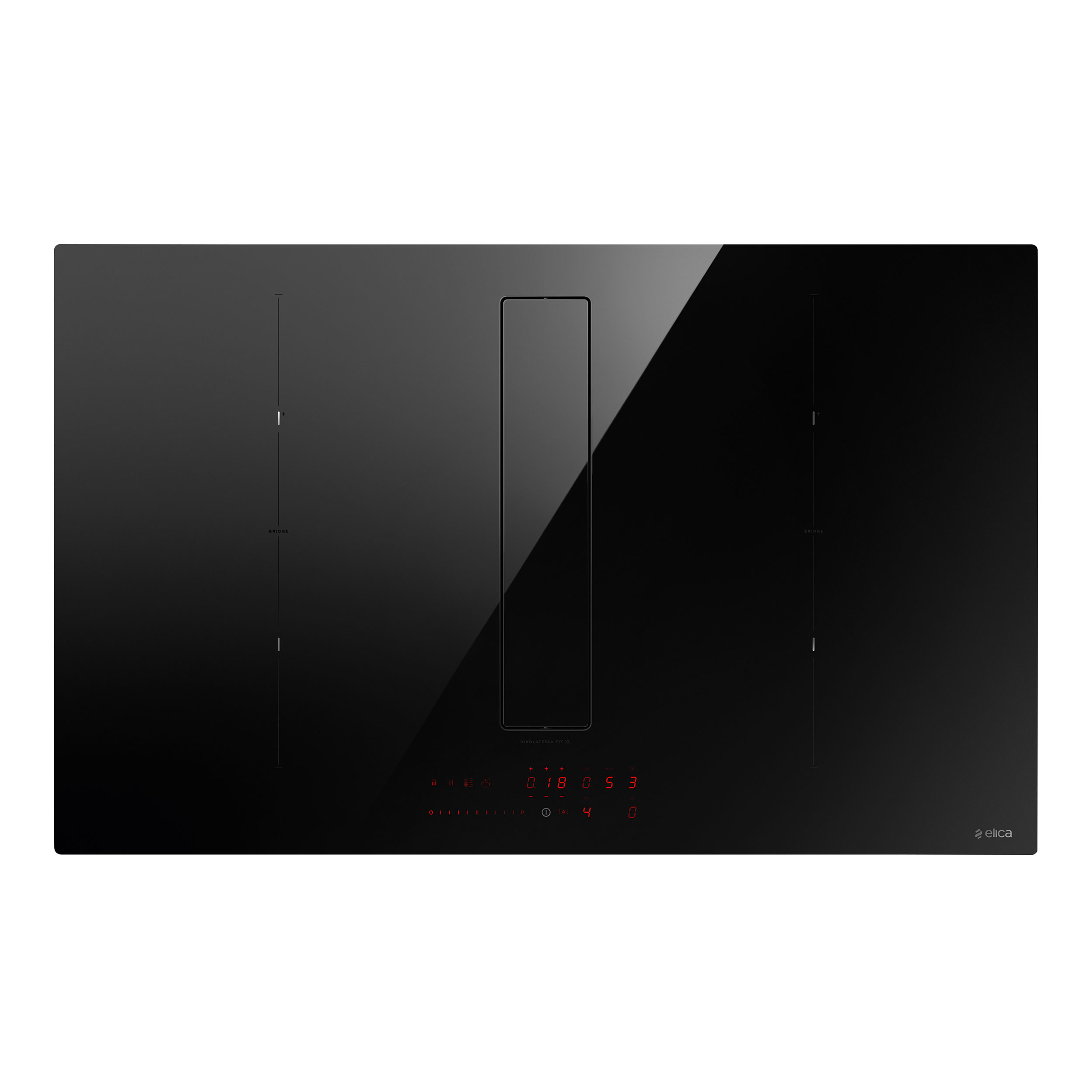 Kogeplade med integreret emhætte. Med intern motor - Lige kant, sort glas - 830 mm - Model for recirkulation.