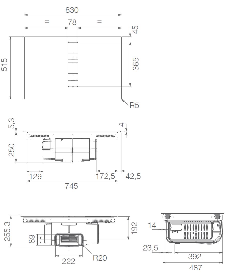 • Produkt (BxDxH) 830 x 515 x 250 mm