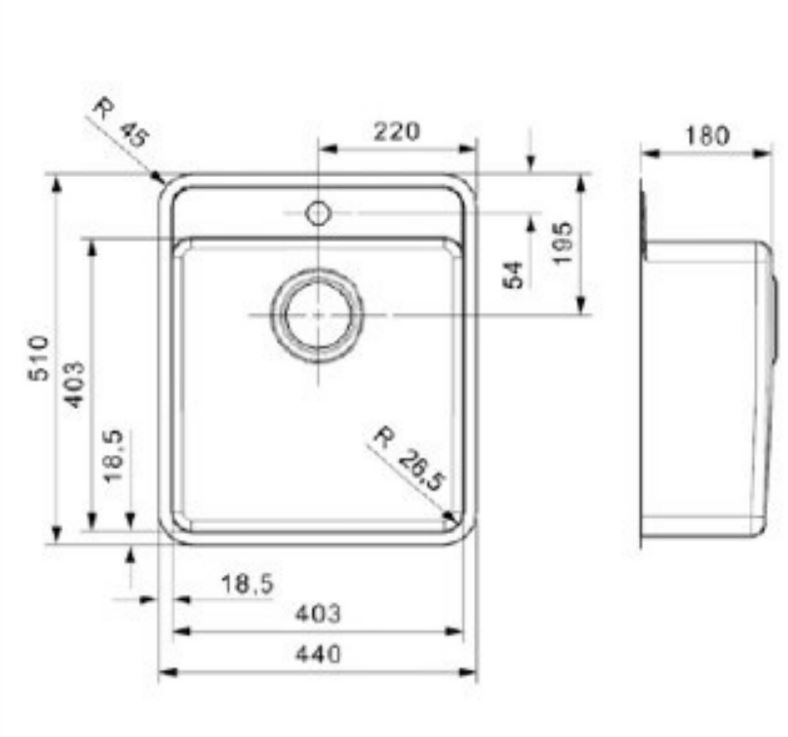 Stålvask, Enkelt kumme med bagkant. For under- eller planlimning - Rustfrit stål