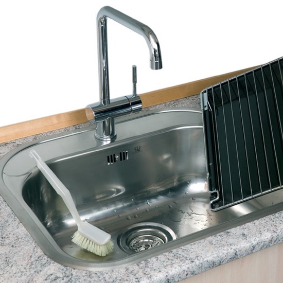 m/løft op, Stålvask, Enkelt kumme med bagkant. For under- eller planlimning - Rustfrit stål - 35 ltr