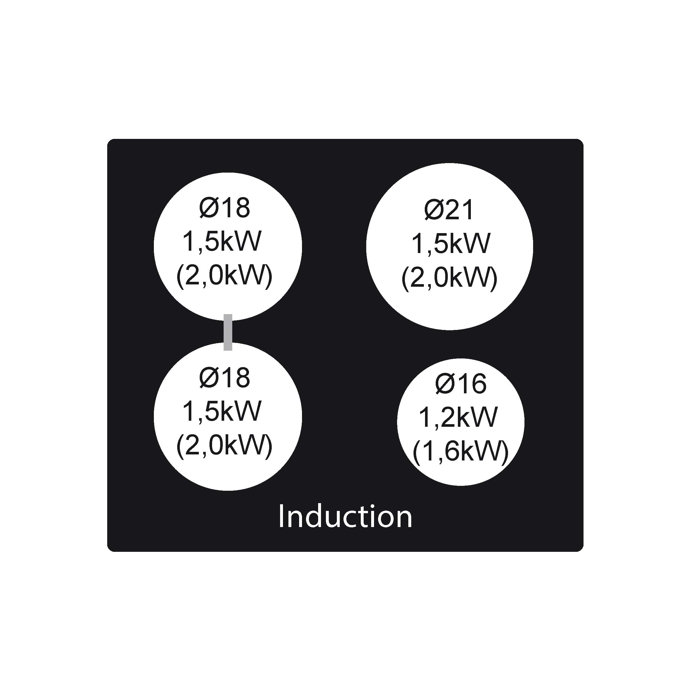 I venstre side kan forreste zone og bagerste zone kobles sammen til én kogezone