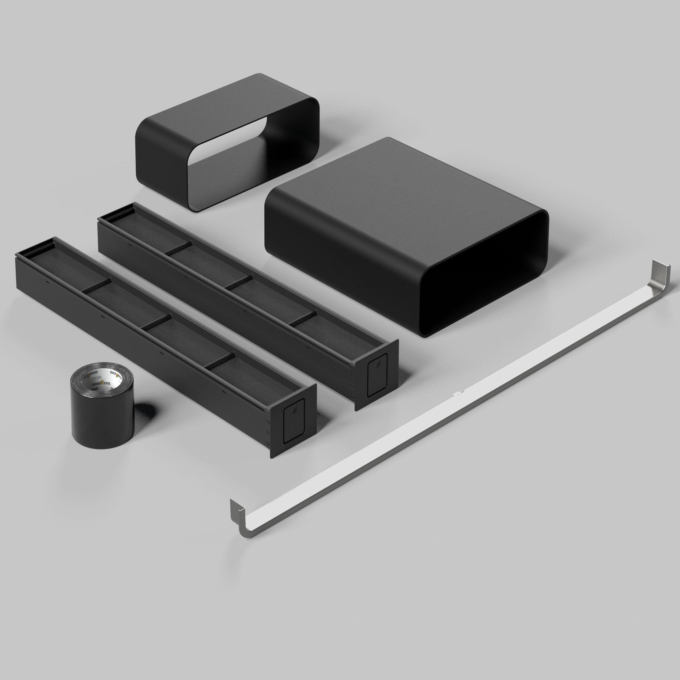 • Praktisk installationskit, der gør det nemt at omdanne din emhætte til en effektiv løsning uden aftræk. Dette sæt er til recirkulation for udblæsning i sokkelrum. Indeholder standard rørføring og tilbehør, som sikrer effektiv og støjsvag ventilation. Ved rørføringslængde ud over standard, kan ekstra rørføring købes separat. - Keramiske filtre (2 stk) - Fastrør 250 x 94 x 227 mm - Sammenkobling - Forkromet profil - Tape