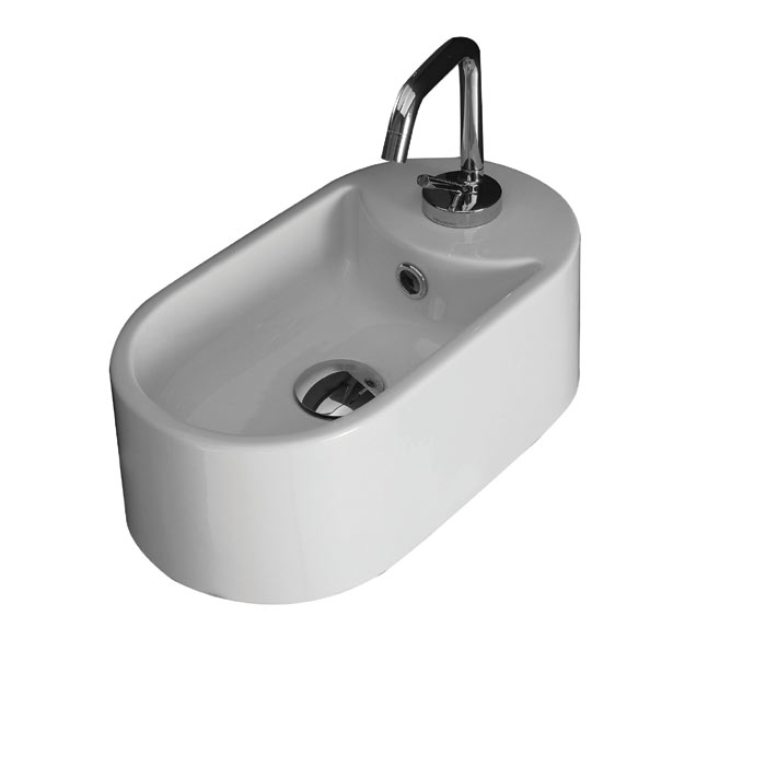Badvask i hvid porcelæn. For montering på bord eller væg - Hvid porcelæn