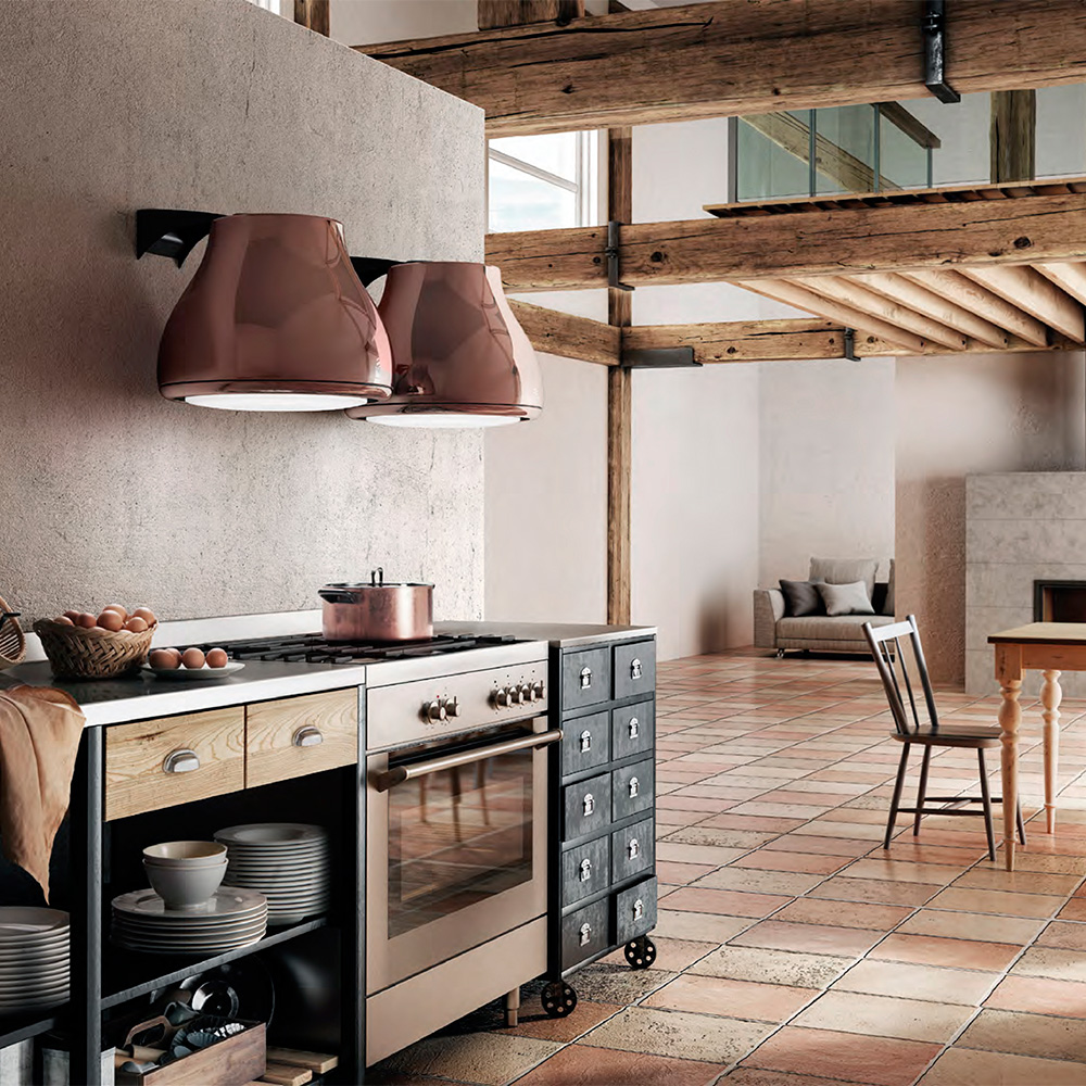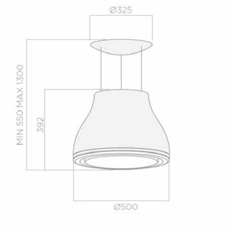 Frithængende wirehængt eller for montering på væg. Med intern motor - Kobber - Leveres med fjernbetjening & recirkulationsfilter - ø500 mm - A