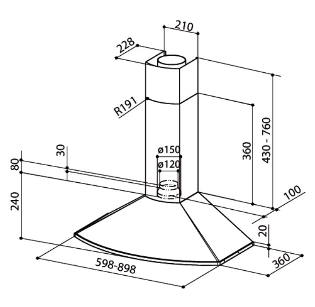 • Produkt (BxDxH) 898 x 360 x 670 - 1000 mm