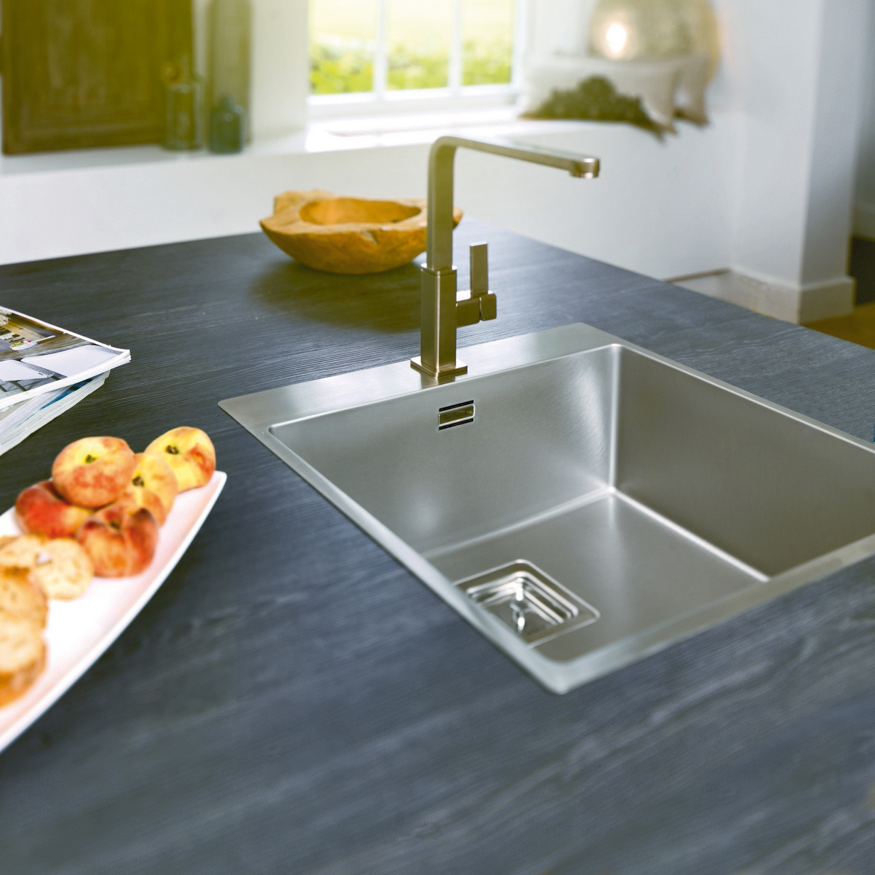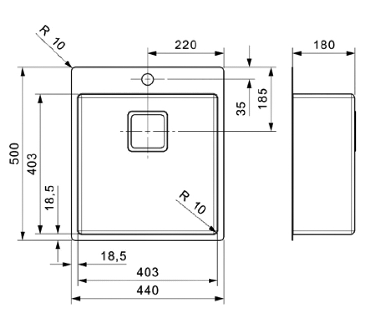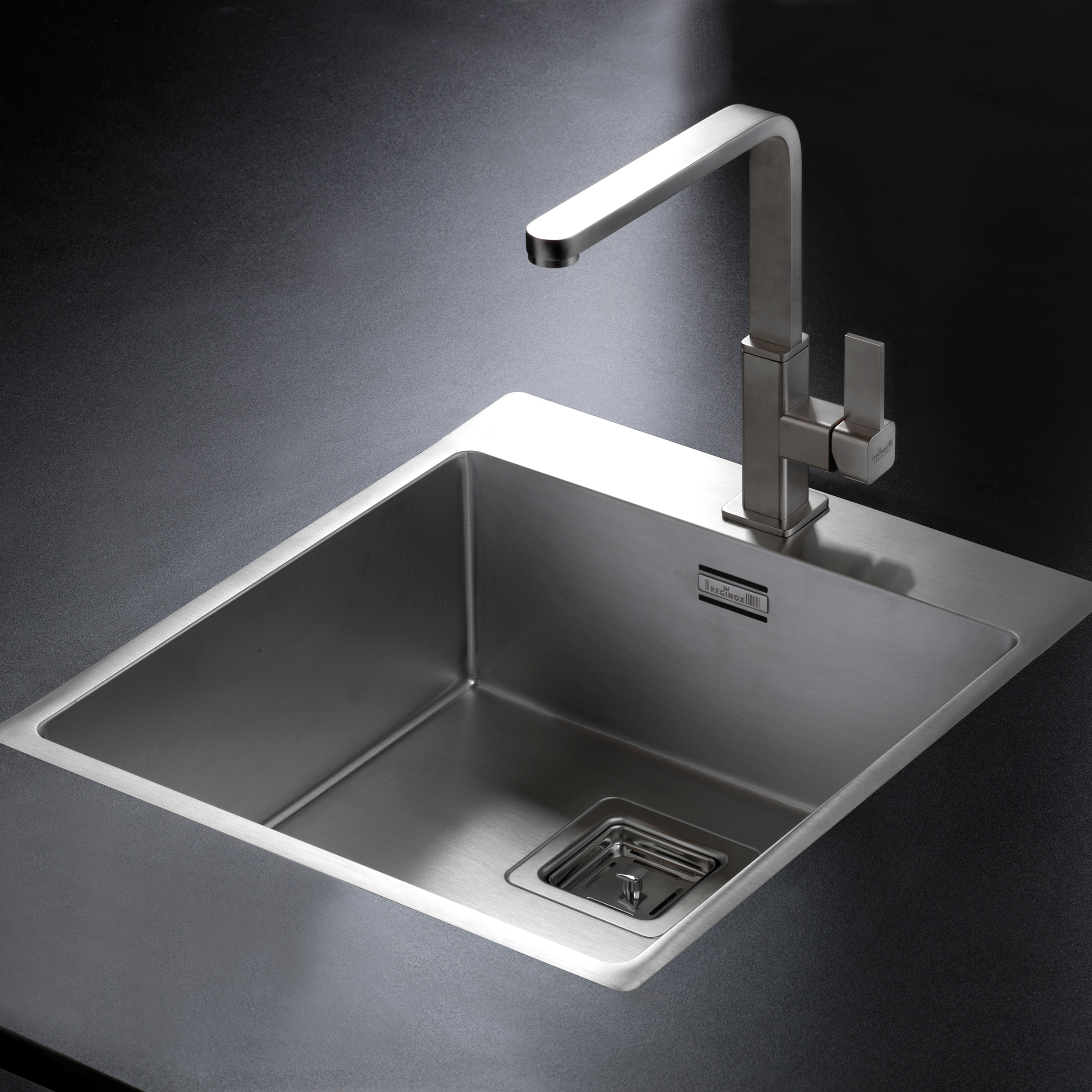 Stålvask, Enkelt kumme med bagkant. For planlimning - Rustfrit stål