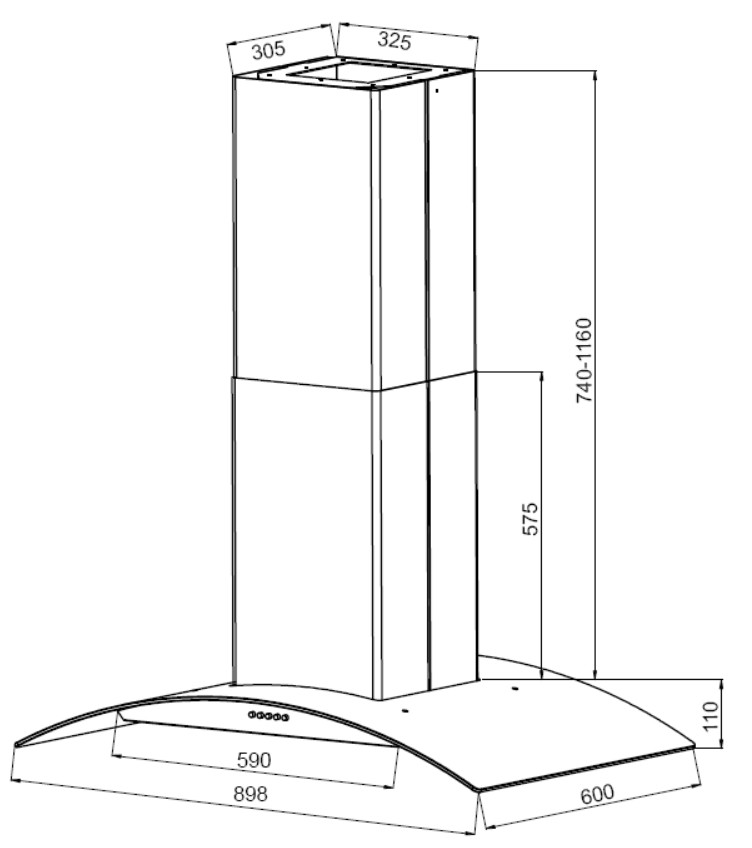 Frithængende emfang. Med intern motor - Rustfrit stål / glas - 898 mm - A - Kulfilter kan ikke bruges