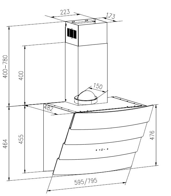 • Produkt (BxDxH) 595 x 482 x 855 - 1235 mm