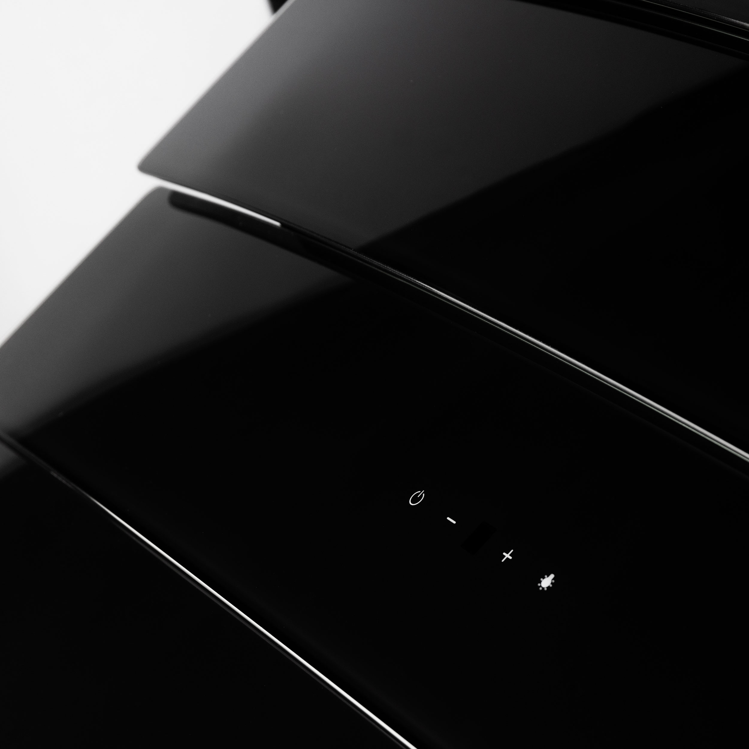 Vægmonteret emfang, skråtstillet. Med intern motor - Sort glas - 595 mm - A++