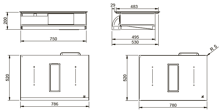 - Produkt (BxDxH) 786 x 520 x 200 mm