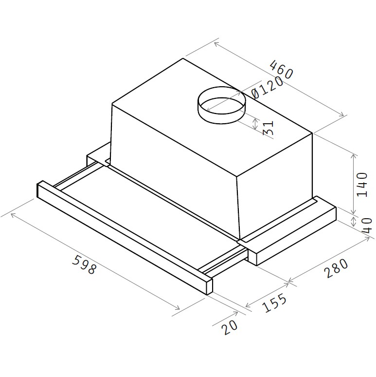 • Produkt (BxDxH) 598 x 300 - 455 x 140 mm