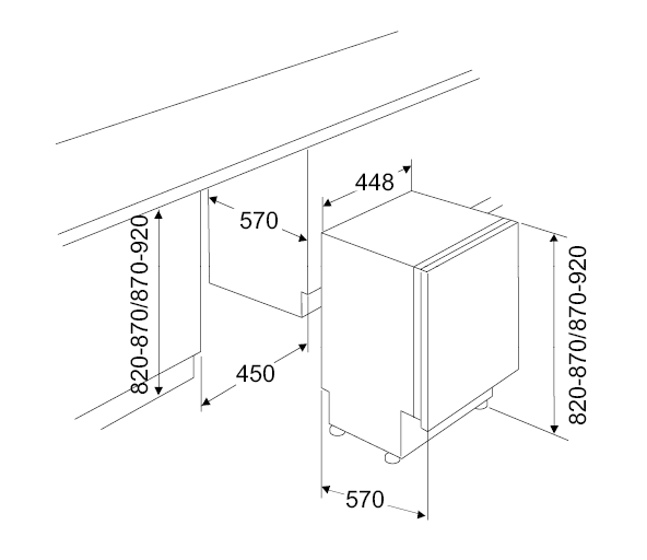 Underbygnings opvaskemaskine - Hvid - 44,8 cm - 10 kuverter